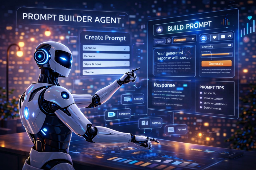 Create clear, powerful prompts in seconds. The Prompt Builder Agent helps you turn simple ideas into structured inputs for better AI results—fast, easy, and effective.
