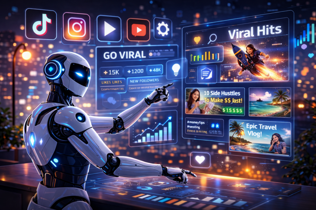Create video ideas, hooks, captions, and hashtags in seconds. The Viral Content Agent helps you plan and create content for TikTok, Instagram, and YouTube—so you can grow faster and stay consistent.